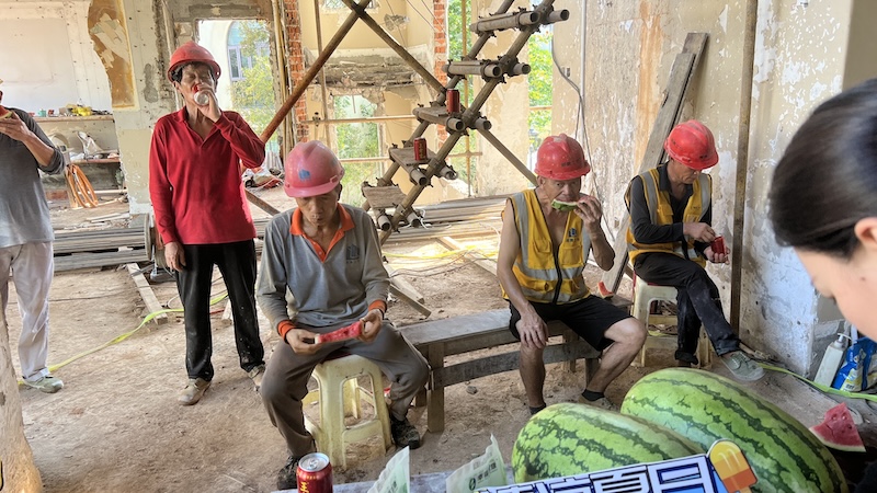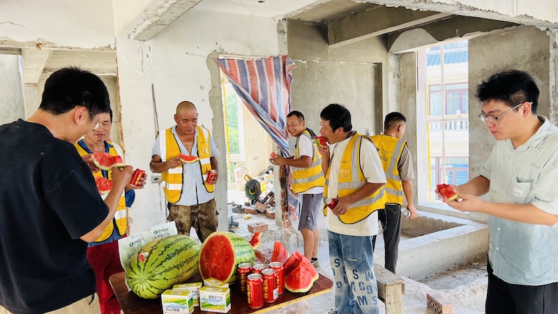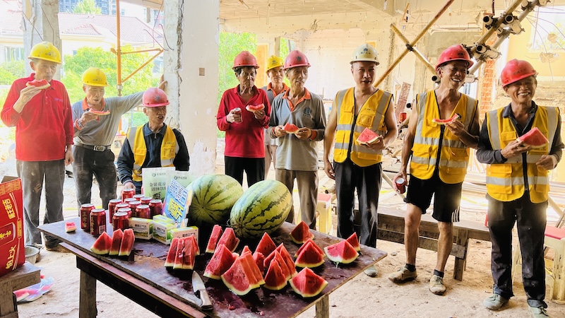 公司精心准备了西瓜、王老吉、凉茶等各种消暑饮品,让工友们在忙碌的工作中随时能感受到一份清凉,驱散夏日的酷热。